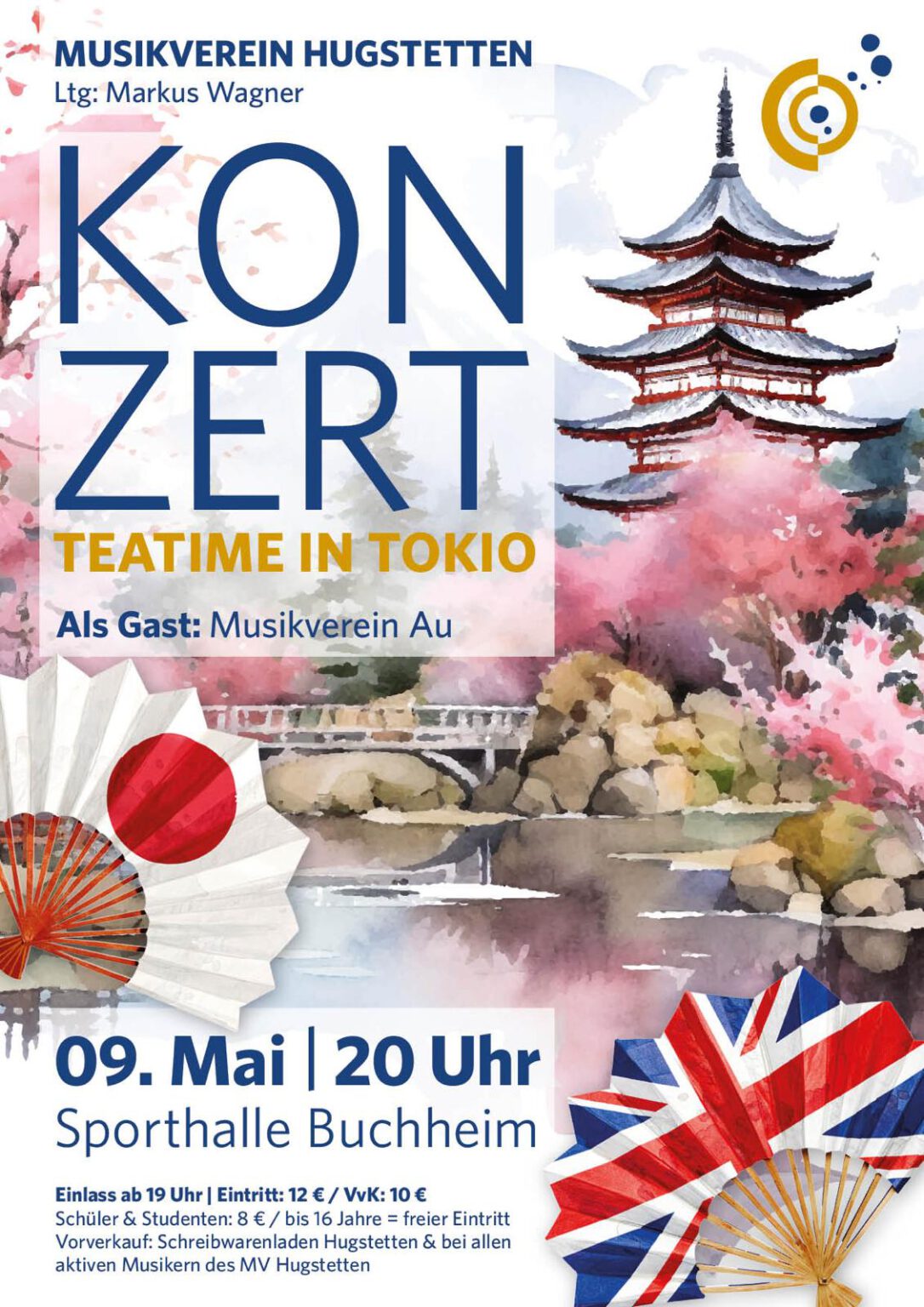 Am 09. Mai um 20 Uhr lädt der Musikverein Hugstetten zu einem ganz besonderen Konzertabend in die Sporthalle Buchheim ein. Unter dem Titel „Teatime in Tokio“ erwartet die Besucher eine musikalische Reise, die fernöstliche Klänge mit moderner Blasmusik verbindet – abwechslungsreich, überraschend und mitreißend.